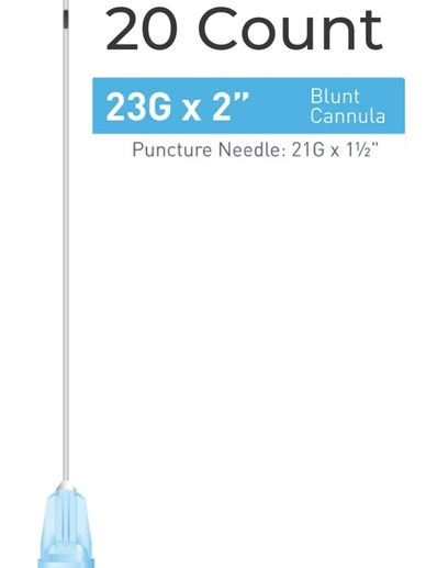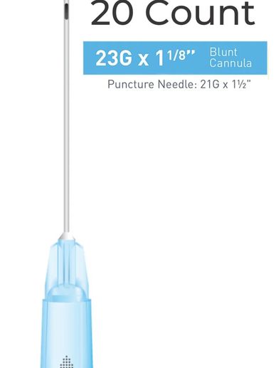 Single Cannula of 23G x 2" (50mm). Blunt, flexible microcannula for atraumatic injections.