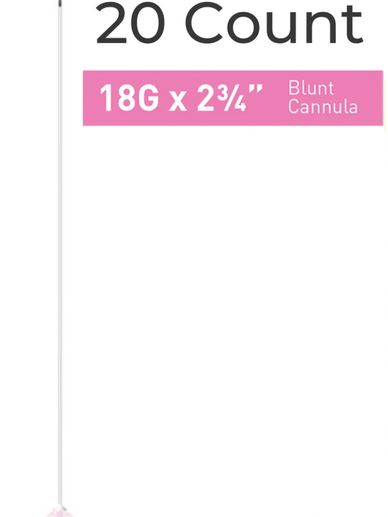 Single Cannula of 18G x 2¾" (70mm). Blunt, flexible microcannula for atraumatic injections.